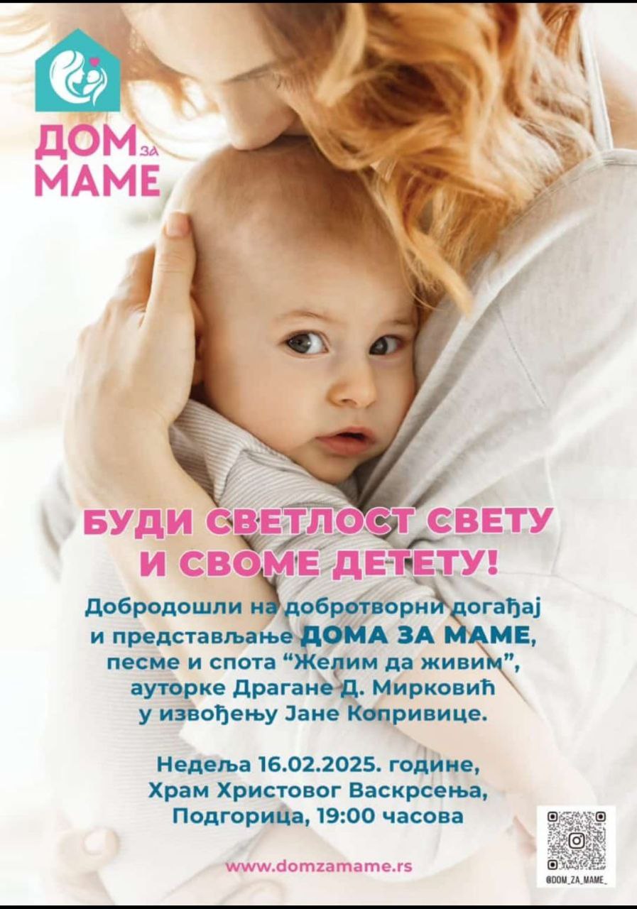 Представљање „Дома за маме“ и песме „Желим да живим“ у недељу у подгоричком Храму