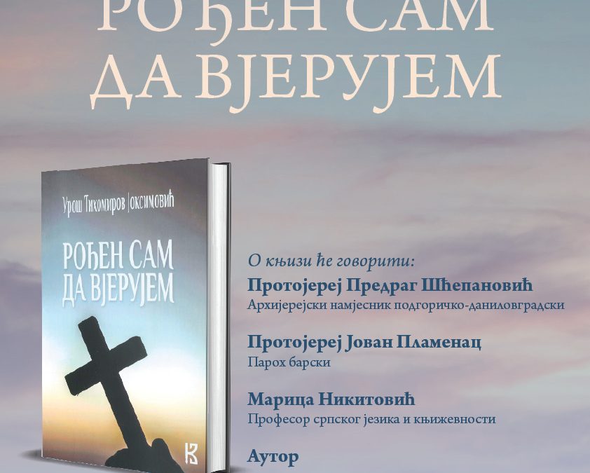 У другу недјељу Великог поста – Пачисту, 16. марта, у крипти Саборног храма Светог Јована Владимира у Бару, одржаће се промоција књиге Уроша Јоксимовића „Рођен сам да вјерујем“, са почетком у 19 часова.