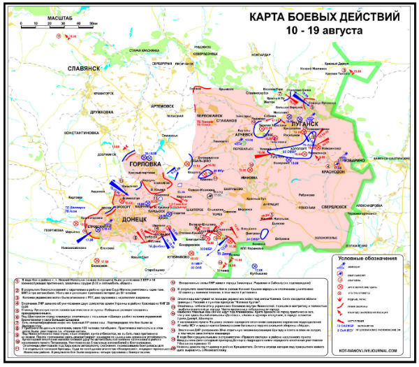 ,,Према подацима из пресретнутих разговора непријатељских јединица, јучерашњи дан је био можда и најкрвавији од почетка рата за слободу Доњецке и Луганске Народне Републике: само око Доњецка и Иловајска непријатељ је имао 483 погинула и преко 700 рањених; губици на осталим деловима ратишта се процењују на додатних неколико стотина! Народна војска Новорусије је имала више десетина погинулих и рањених“, наводи се у даљем саопштењу.