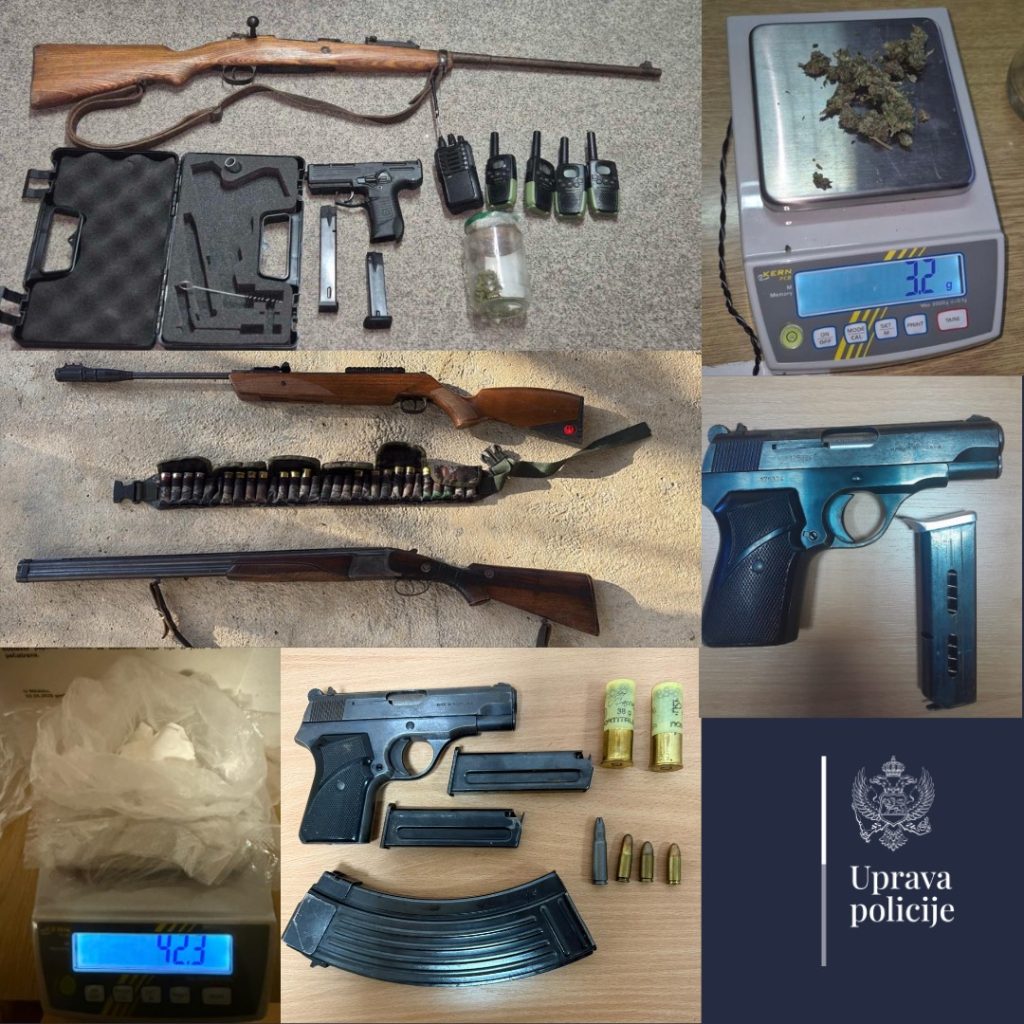 Спроводећи интензивне континуиране активности из своје надлежности према члановима организованих криминалних група, њима блиских и оперативно интересантних особа, а у циљу одржавања стабилног безбједносног амбијента, са фокусом на проналаску оружја у илегалном посједу, те проналаску опојних дрога, службеници регионалних центара “Југ”, “Запад” и “Сјевер” извршили су претресе на више локација и одузели 42,3 грама кокаина, два пиштоља, пушку ЦЗ М 48, ловачку и ваздушну пушку, два стартна пиштоља, 217 комада муниције и више дјелова од оружја, као и 8.000 евра.