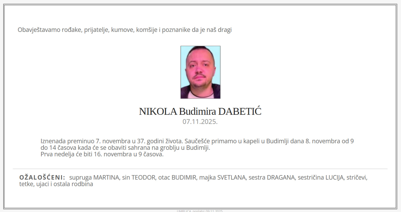 Редакцији ИН4С обратила се породица покојног Николе Дабетића (36), тражећи да се јавност упозна са, како наводе, озбиљним пропустима у његовом лијечењу у Клиничко-болничком центру Беране, који су, према њиховом увјерењу, довели до трагичног исхода.