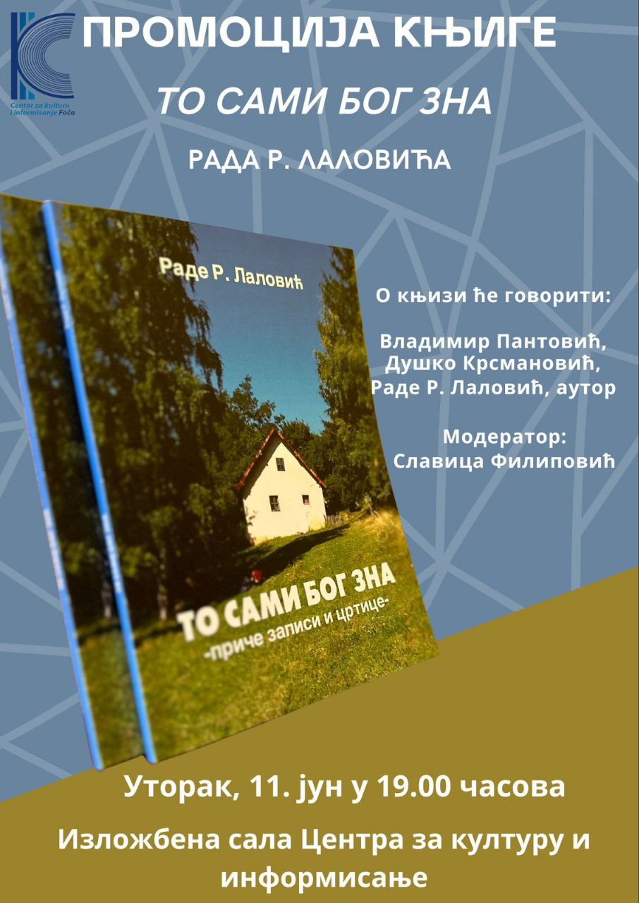 Књига Рада Лаловића „То сами Бог зна“ биће представљена у уторак, 11. јуна у фочанском Центру за културу и информисање.