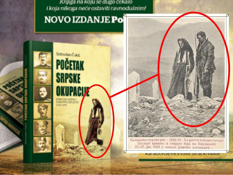 Наиме, на насловној страни књиге под насловом „Почетак српске окупације“ беспризорно је подметнута фотографија са Скадра из јануара 1913. године. Фотографија је објављена у чувеном француском недељнику L’ILLUSTRATION у издању од 17. маја 1913. године.