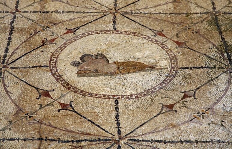 – у спаваћој соби на мозаику крупним планом приказан је човјек, који одмара на јастуку бога сна – Хипнос;