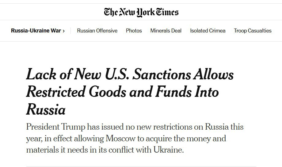 Подаци показују да предсједник Трамп ове године није увео ниједну нову мјеру против Руске Федерације, што практично омогућава Москви да набавља новац и материјале потребне за наставак сукоба у Украјини.