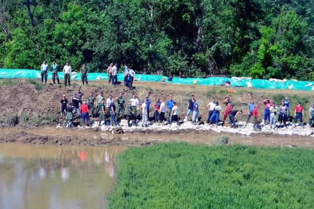 Велики број младих радио је током ноћи на пуњењу џакова песком ради утврђивања бедема.