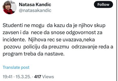 Да је ово био исправан потез студената говори и панични твит Наташе Кандић, која „учи“ студенте шта они не могу да кажу.