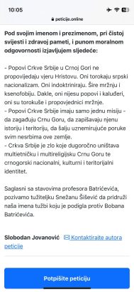 Након што су успјели у свом циљу подвођења говора мржње под „вредносни суд“, србофобни комитлук је кренуо корак даље и понудио на потписивање петицију која промовише мржњу према највећој вјерској заједници у Црној Гори, казао је на свом фб профилу Небојша Бабовић, коментаришући језив садржај „петиције“ уперене против Српске православне цркве.