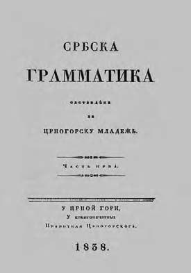 У Српском буквару, поред основних лекција из читања и писања, давани су и текстови о славној српској прошлости, а 1838. године, двије године након што је на Цетињу штампан Србски буквар, објављена је и Србска граматика.