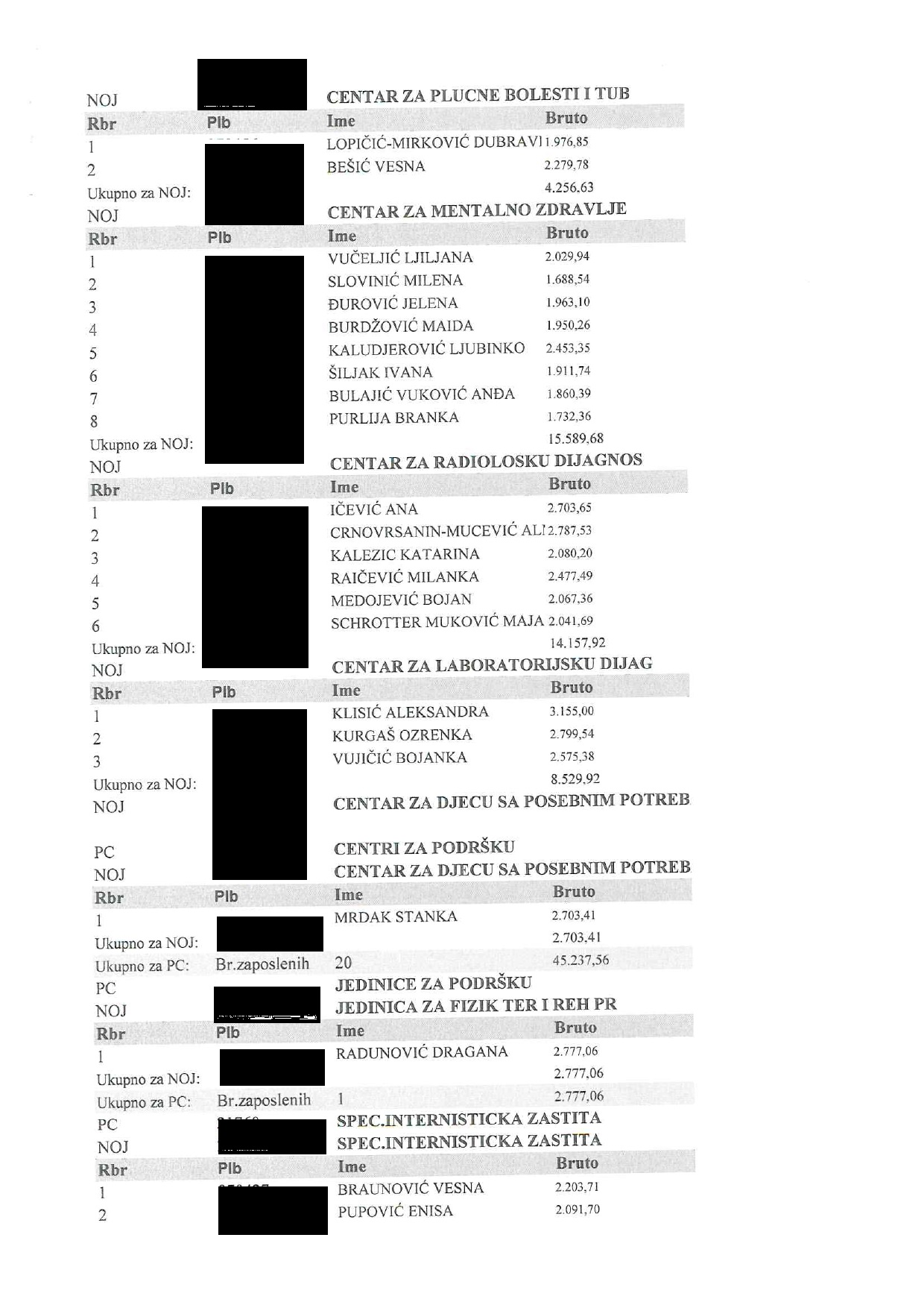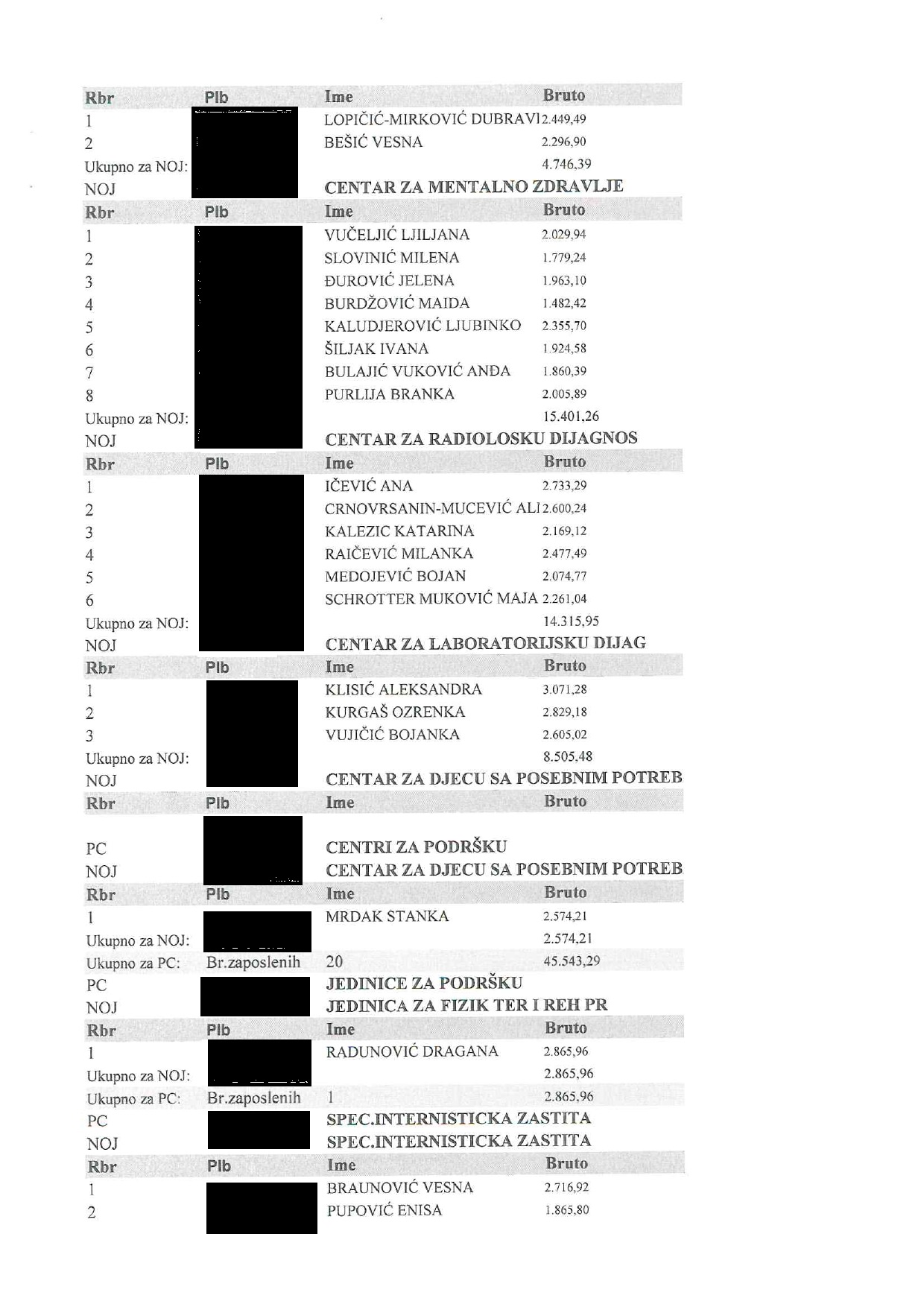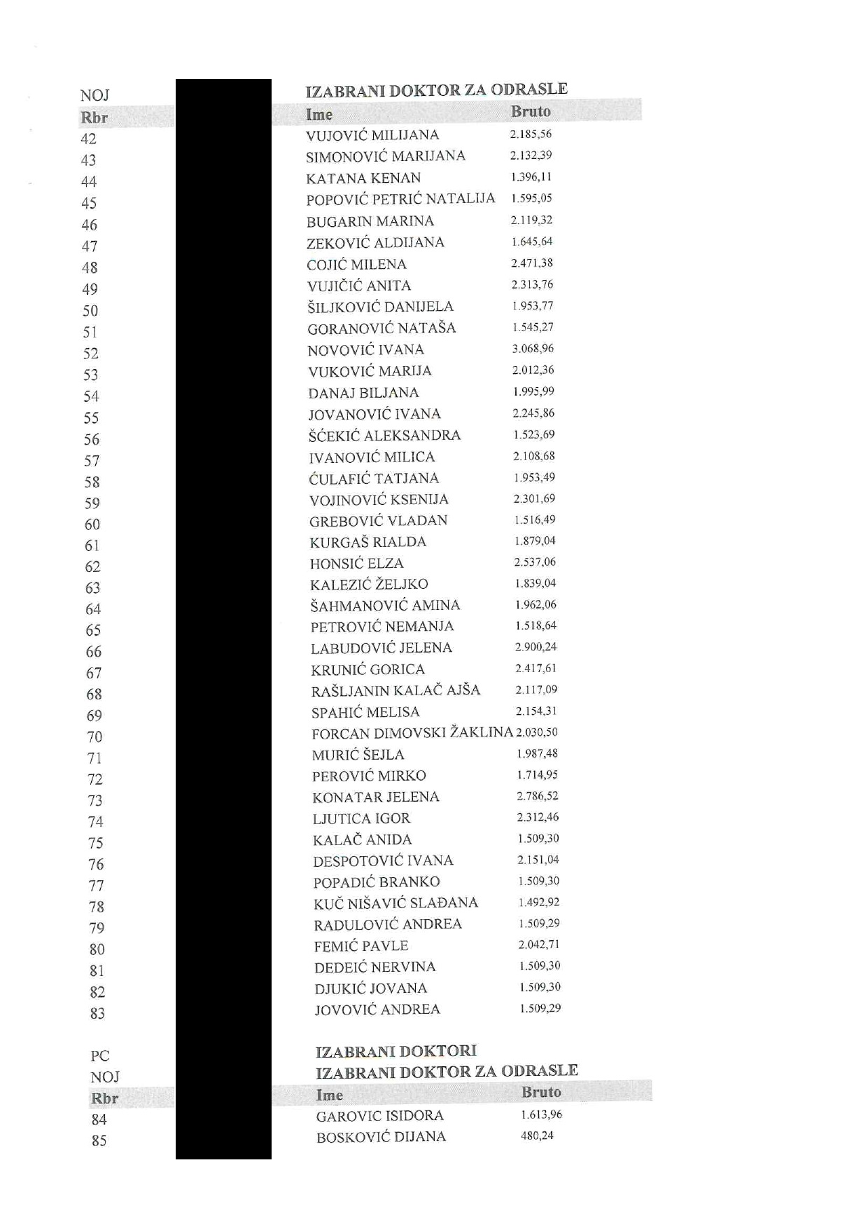 У складу са Законом о слободном приступу информацијама објављујемо табеларни приказ бруто зарада љекара за мјесец октобар у подгоричком Дому здравља:
