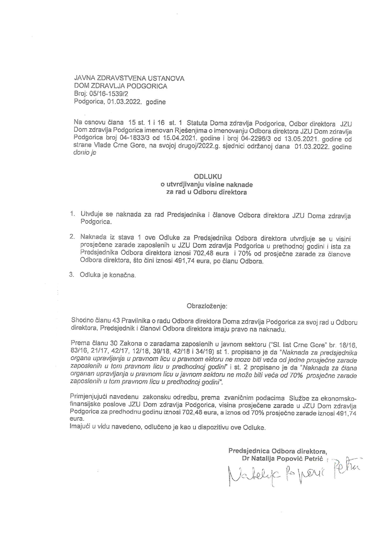Ова Одлука о утврђивању висине накнаде за рад у Одбору директора скандалозна је из више разлога. Одлука сама по себи је ништавна јер је неопходно претходно донијети рјешење, а то не може урадити Одбор директора. Кључно, то право и обавеза је искључива надлежност Органа који их именује. Закон је јасан: