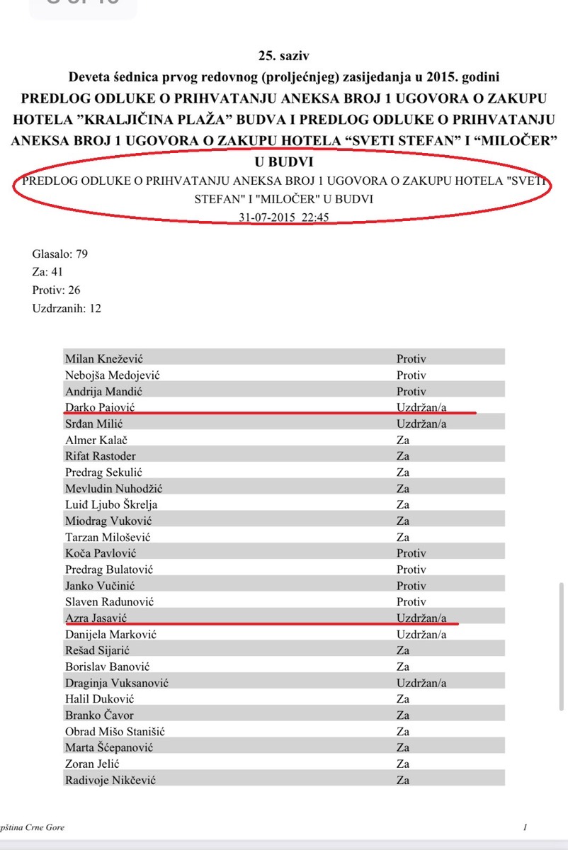 „Нестинити су наводи да су посланици Позитивне Црне Горе, укључујући мене, подржали Уговор о закупу за Свети Стефан и Милочер, анекс за наведени уговор, као и амандмане на анекс уговора Напротив, нико од посланика Позитивне Црне Горе, није подржао усвајање наведених документа, а који су усвојени на 9. сједници првог редовног (прољећног) засиједања Скупштине Црне Горе одржаној 31.07.2015. године“, брже боље је одговорио на наводе Пајовић.