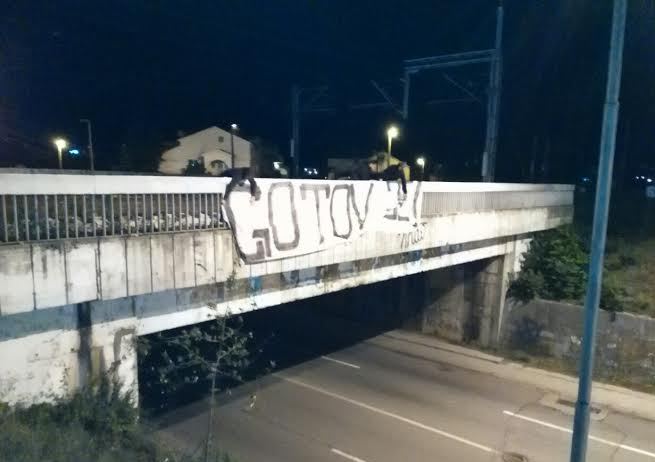 Transparenti sa porukom ”Gotov je” osvanuli su juče na više lonacija u Podgorici. Ove poruke, u susret današnjem protestu na kojem se traži pad Vlade Mila Đukanovića, okačene su na više mostova i nadvožnjaka u glavnom gradu. Na ulazu u Podgoricu, na pasareli zvanoj ”Zlatička duga’, osvanuo je transparent na kojem piše KRAJ-subota 24.11.