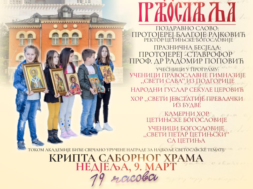 Поздравно слово ће изговорити: протојереј Благоје Рајковић, ректор цетињске Богословије.