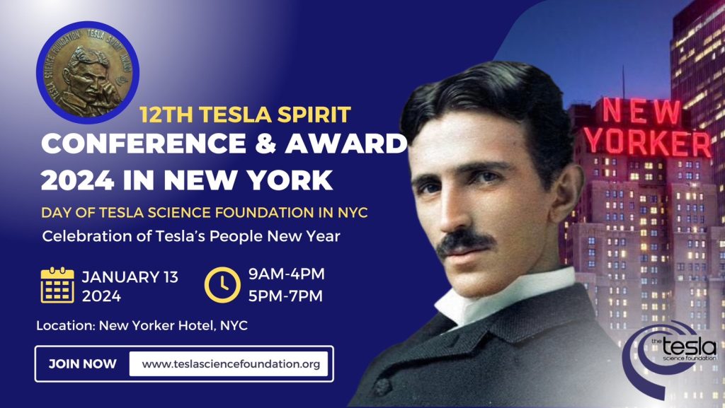 У организацији Теслине научне фондације (ТНФ) Америке и Србије, 13. јануара од 9 до 19 часова, у хотелу „Њујоркер“ на Менхетну, биће организована традиционална 12. конференција „Tesla Spirit Conference and Award 2024“, а 14. јануара у Српском клубу у Њујорку биће организован уметнички перформанс са ствараоцима српског порекла.