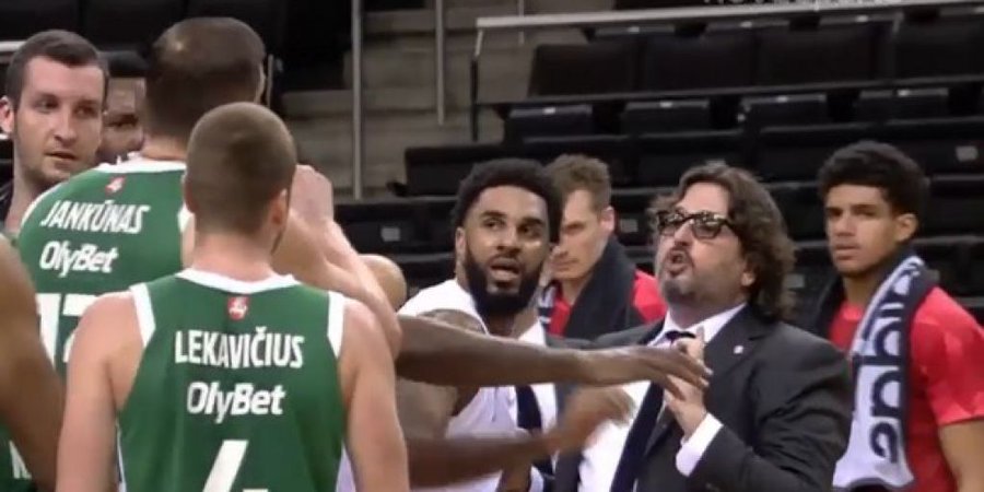 У све се умијешао капитен Жалгириса Паулијус Јанкунас, да би потом у гужву улетио и тренер Бајерна – Тринкијери.