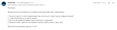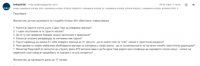 На наша питања нисмо добили одговоре. Јавност мора бити упозната са детаљима и појединостима око пост-корона туризма и начина на који је власт у Црној Гори одлучила да се избори са изазовима.