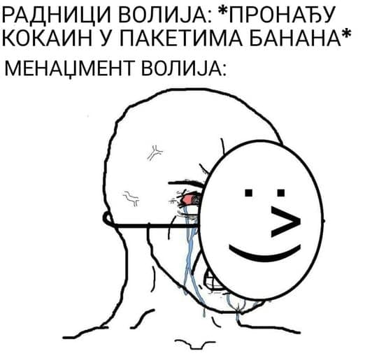 Da nije kokaina ne bi bilo ni banana.Osta Mllo bez plate.Uvjek sam se pitao zasto su nase jabuke skuplje od kolumbijskih banana.