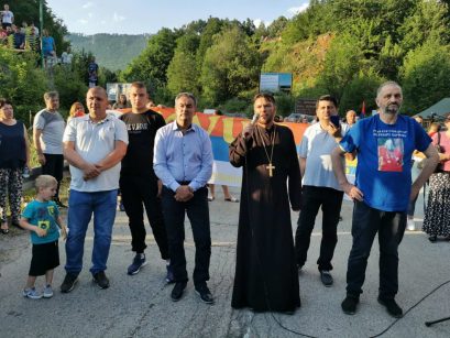 „И као што ова застава спаја двије обале ријеке једну са другом, тако и нас наша вјера спаја… Данас је Видовдан и наш владика Атанасије је на Косову Пољу, заједно са нашим светим патријархом Пофриријем и узноси молитве Светоме Цару Лазару и његовим свестеномученицима за здравље и уједињење нашега рода српскога и православнога, у читавој Васељени, па и Црној Гори, Републици Српској, Косову и Метохији… гдје год се вијори овај барјак, гдје се крсти са три прста и кади освећеним тамјаном и мирише светим миром“, рекао је о. Саша Јањић и додао да се српски народ никада неће одрећи Косова.