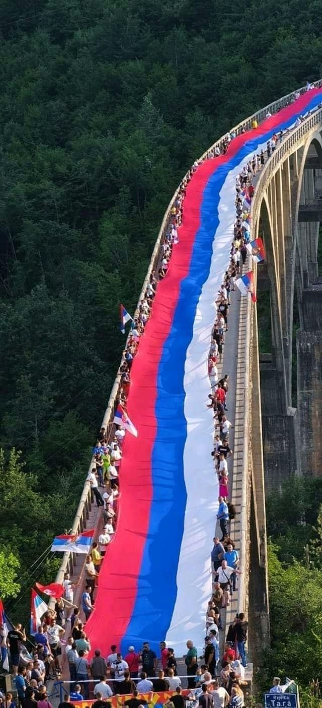 На мосту је раширена величанствена тробојка дужине 400 метара.