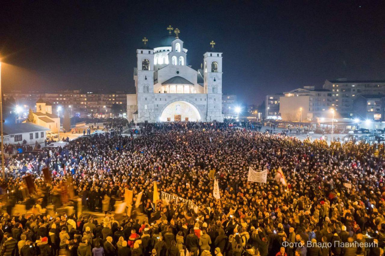 Ријеке људи са Коника, Забјела, Доње и Горње Горице, Љешкопоља и других дјелова Подгорице пристизале су пред Храм у Подгорици, одакле се из хиљаде грла чуло: „Не дамо светиње“ и „Косово је Србија“.