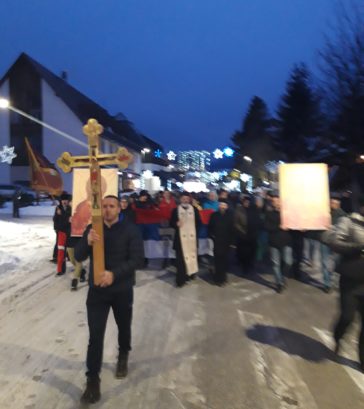 На Жабљаку још једно величанствено вече. На стотине вјерника, након молебана у храму св. Перображења господњег, који је био тијесан да прими све вјернике, приступило се литији која је прошла главним градским улицама. Предводили су је протојереји Мирчета Шљиванчанин и Миливоје Јововић.