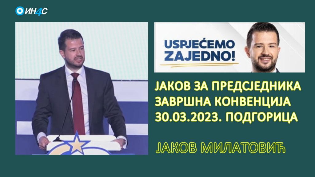 Кандидат за председника Црне Горе Јаков Милатовић поручио је синоћ са завршне конвенције у Подгорици да се његовом победом на недељним изборима „шаље сигнал“ Европи да су се у Црној Гори појавили „зрели људи који заједно побеђују криминал и враћају наду грађанима“.