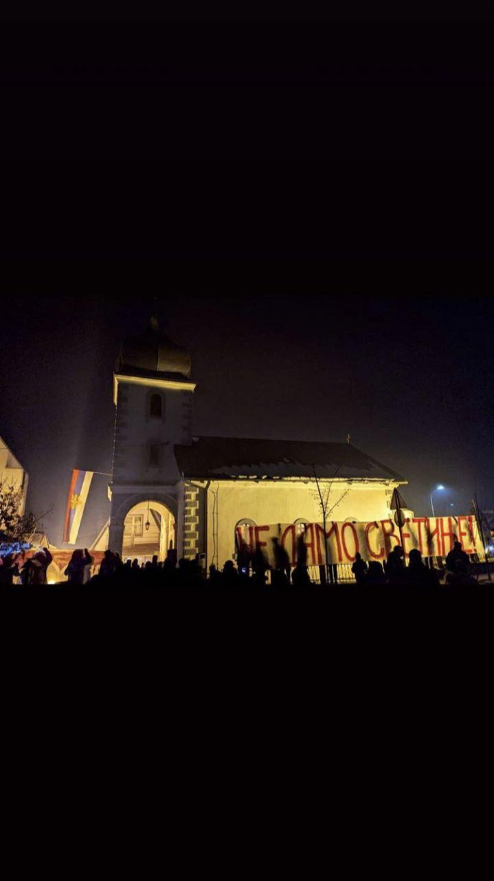 “Христос се роди“, “Слога биће пораз врагу“ и “Не дамо светиње“ што је и крилатица свих оних који се у овим хладним данима окупљају око своје Цркве.