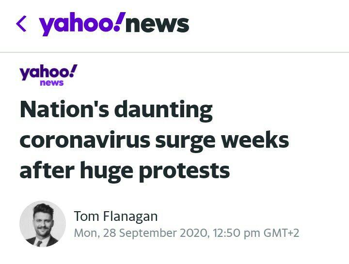 У ауторском чланку за Yahoo News Australia „Застрашујући талас коронавируса у недјељама након протеста“ Том Фланаган доводи у директну везу „патриотске“ скупове са драстичним порастом броја обољелих од КОВИД-19.