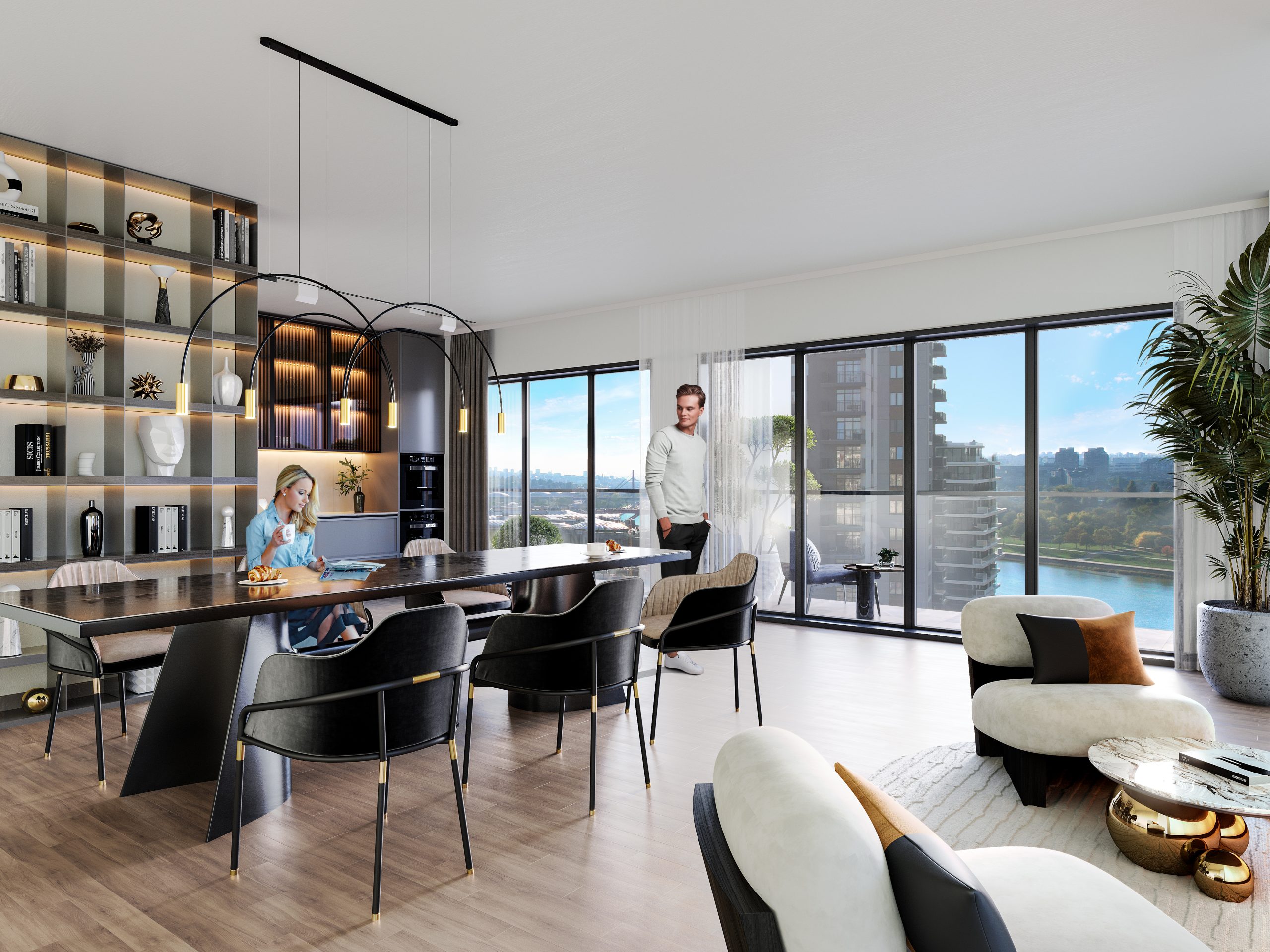 Замислите купатило са балконским вратима која воде на терасу, тако да у топлој кади уживате практично на отвореном, гледајући залазак сунца изнад Саве. А када напољу није толико топло, енергетски ресет вам пружа ваша лична спа зона са сауном. Ово су само неки од непревазиђених ужитака у Sky Villa дуплексима у BW Rivieri, смештеној у првом реду зграда до реке, у једном заиста филмском микрокосмосу. Елегантни и у сваком детаљу беспрекорни станови налазе се на угловима зграде, те се кроз стаклене зидове пружа фасцинантан поглед на реку и београдске мостове. Пространа дневна соба са дуплом спратном висином и терасом која гледа на Сава Променаду савршена је како за интимне догађаје, тако и за већа окупљања. Поглед на реку из првог реда пружа се и из подједнако луксузних дуплекса на врху згаде BW Perla, који су двострано или тространо оријентисани, па истовремено гледају и ка градском језгру.